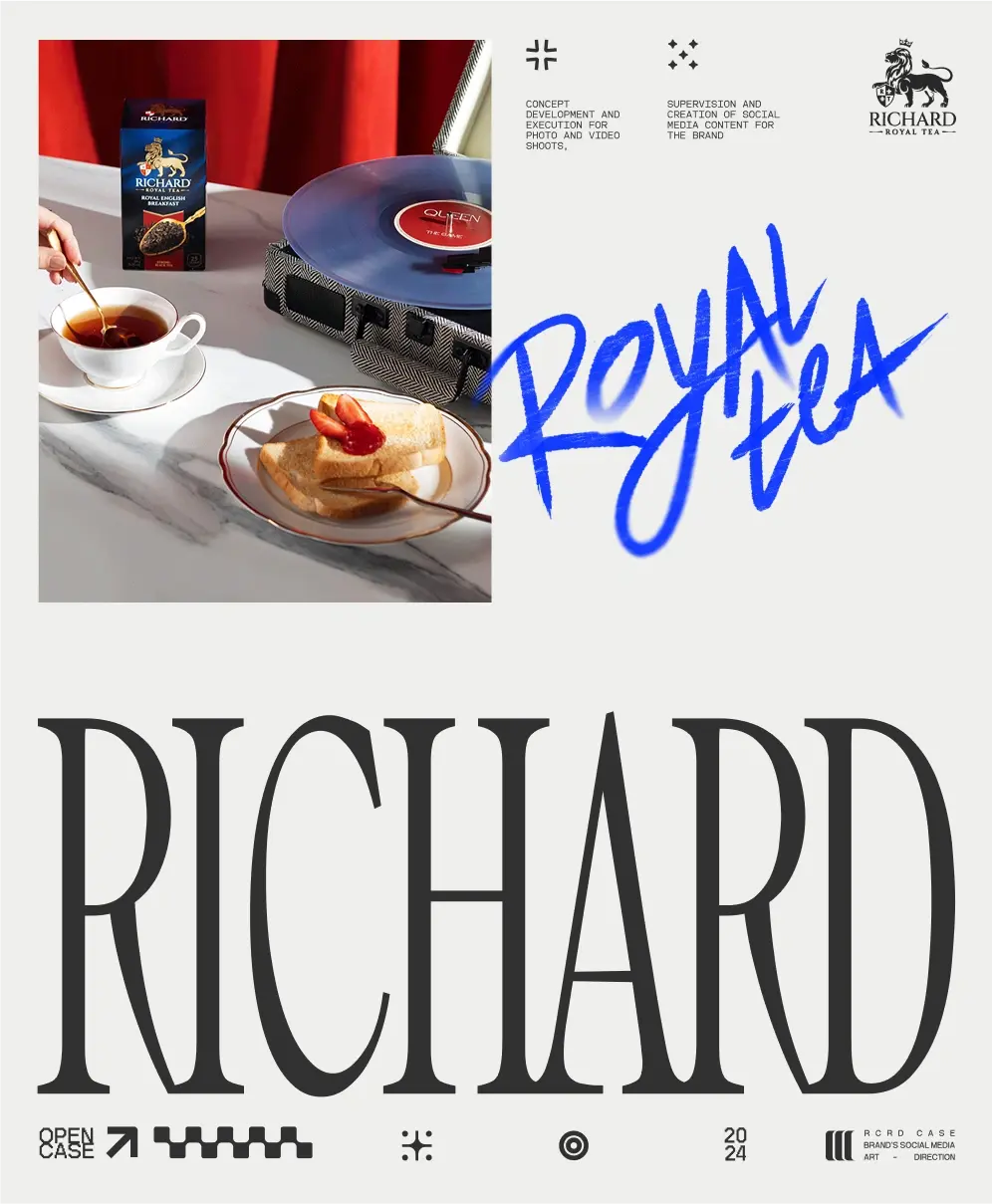 Разработка айдентики и супервизирование социальных сетей, концепций фото- и видео-съемок, управление командой и обучение дизайнеров